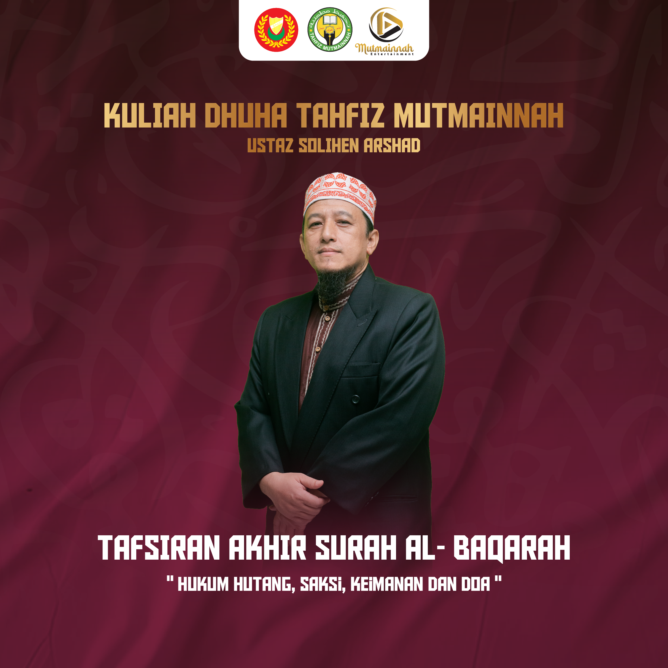 Pengenalan:Kuliah ini memberi tumpuan kepada penjelasan ayat-ayat terakhir Surah Al-Baqarah (ayat 282-286), menekankan prinsip-prinsip Islam berkaitan hutang-piutang, kepentingan saksi, asas keimanan, dan kekuatan doa.